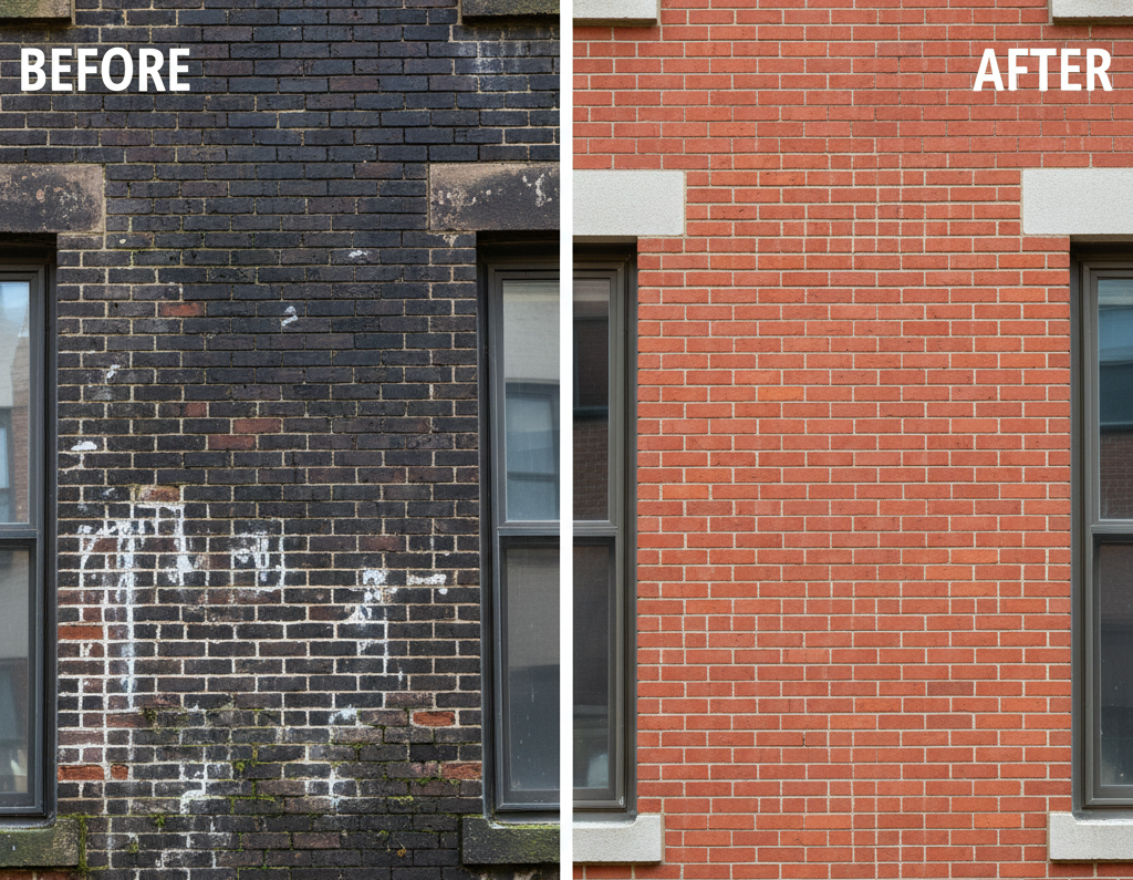 This property was a classic Boston row house that had suffered from neglect. Decades of city pollution had turned the red brick black with soot, and moss was growing on the shaded side of the building. More concerning was the mortar; it had receded significantly in the joints, allowing dampness to seep into the interior drywall. The property managers needed a solution that would clean the building without damaging the soft, historic brick face.